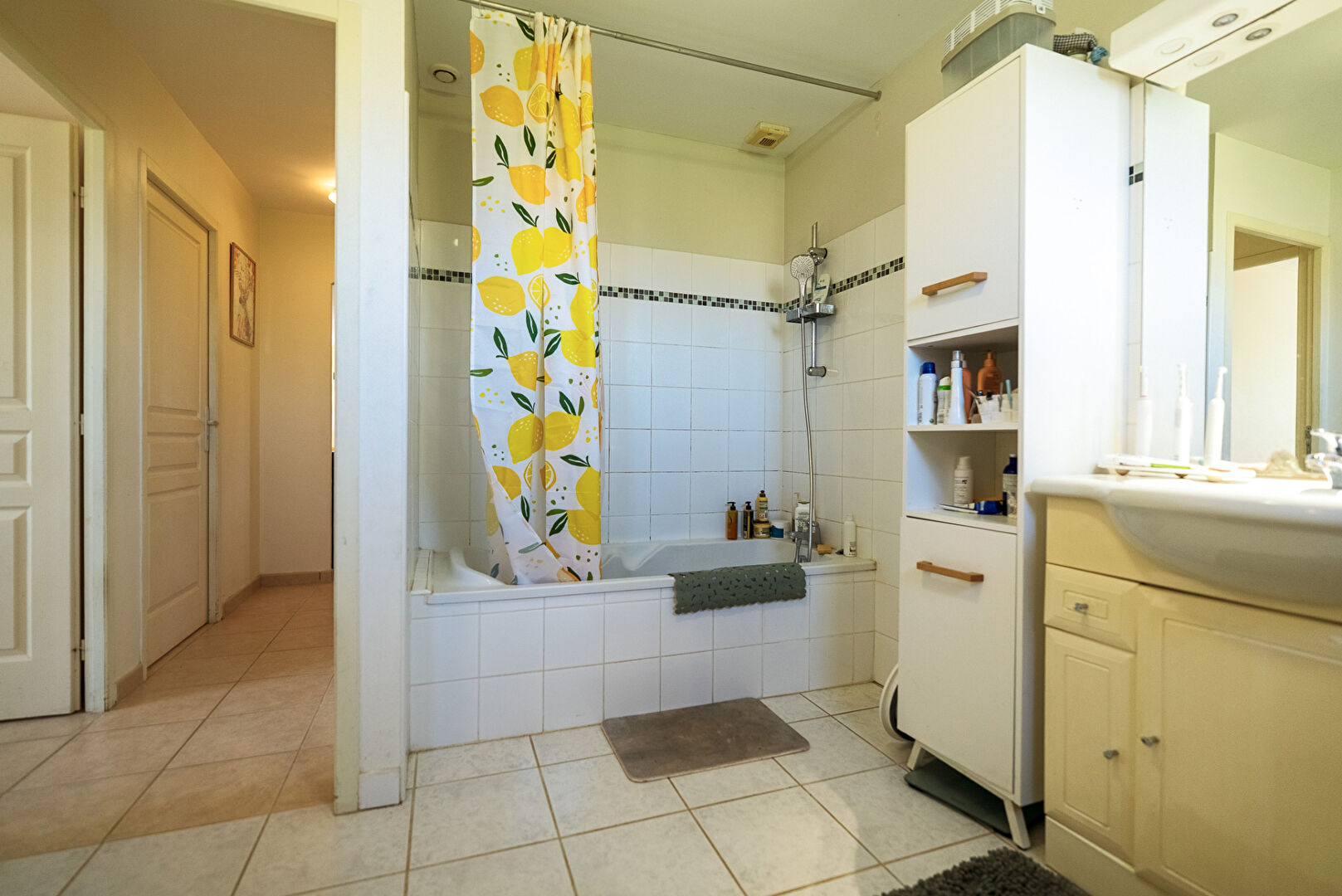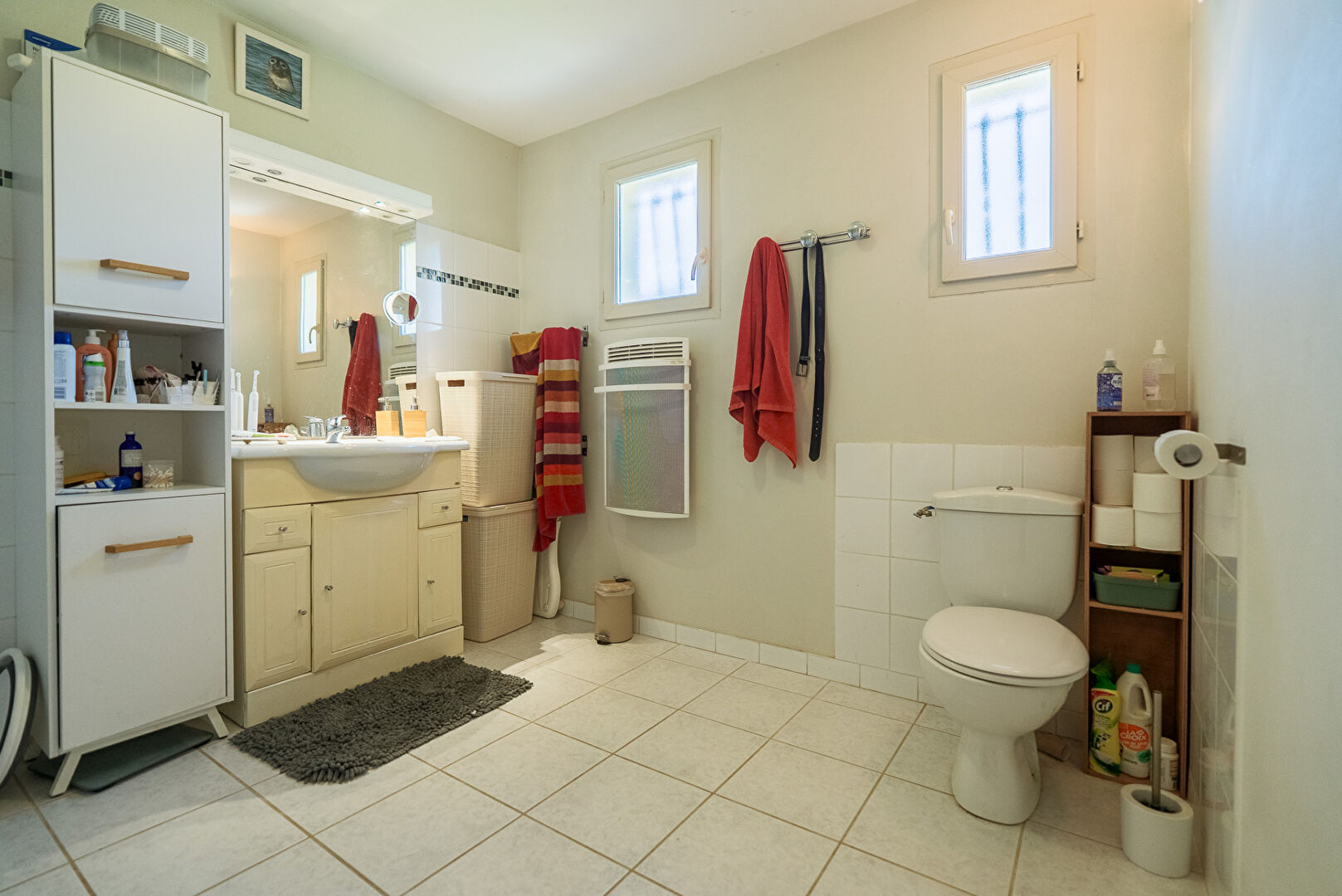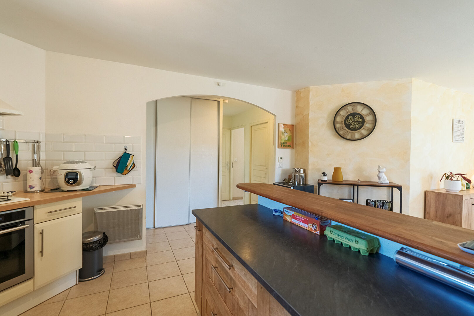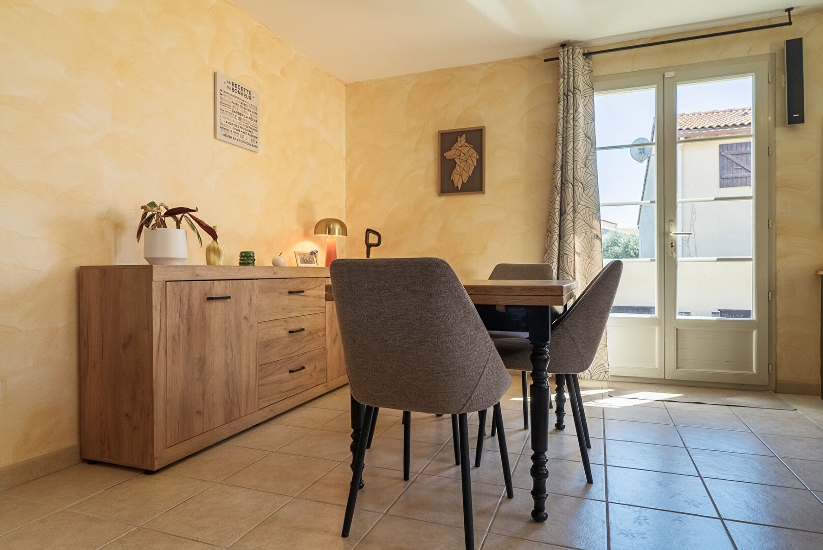 A 10 minutes de Lézignan-Corbières et à 25 minutes de Carcassonne et Narbonne, dans les faubourgs du très beau village de Fabrezan, voici une villa quatre faces avec jardin et garage. Elle développe de plain-pied quatre pièces principales et 103 m² dont 89 m² habitables. Passé le porche d’entrée, la maison s’ouvre par un hall doté de grands placards. Puis vient la pièce maîtresse, le séjour cuisine qui se déploie sur près de 26 m² . L’espace cuisine de 13,8 m² est aménagé et délimité du reste de la pièce de vie par un large comptoir façon bar. On y distingue un coin repas en face de la cuisine et un coin salon éclairé par une baie donnant sur la terrasse au sud. La cuisine permet l’accès direct au garage mitoyen lequel est équipé d’un coin buanderie. Trois chambres de 10,8 m², 12,40 m², et 13,20 m² constituent la partie nuit. Elles sont desservies par une salle de bains confortable de 7,7 m². A l’extérieur, le jardin s’enroule autour de la maison et se développe essentiellement au sud avec une grande terrasse aménagée, et au nord avec des plates bandes et une allée vers le garage. On notera également une place de stationnement privative sur le côté de la parcelle pour permettre à vos hôtes de stationner aisément. L’ensemble présente une condition harmonieuse et prête à vivre dans un cadre remarquablement préservé. Et si vous faisiez connaissance ? Renseignez-vous, contactez-nous. #3473